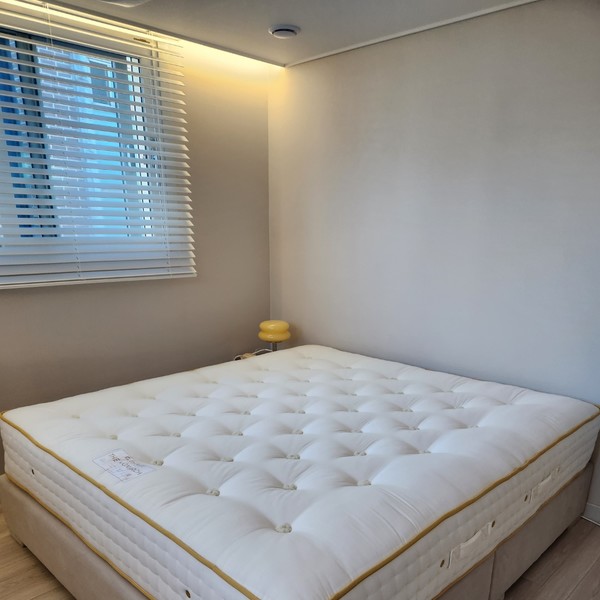 하남 본사 쇼룸에 방문해서 킹, 라지킹매트리스 사이즈 두 가지 모두 누워보았는데 저희한테는 라지킹 사이즈가 딱 좋았습니다. (퀸 사이즈만 사용해온 저희에겐 두 가지 사이즈 모두 신세계..)